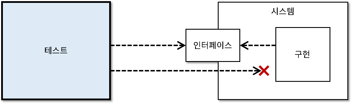 ○ 테스트는 시스템이 제공하는 기능을 검증하기 위해서 시스템이 노출하는 인터페이스에 의존하고 시스템의 기능을 사용합니다.